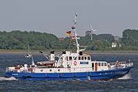 ehemaliges Typboot einer Serie typgleicher Küstenstreifenboote der Wasserschutzpolizei (5 Einheiten), siehe auch >Helgoland< (1973) - BRT: 114 - das Boot wurde 1996 außer Dienst gestellt und 1997 an das "Museum der Arbeit" verkauft |