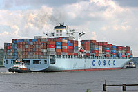 7. Schiff einer Serie nahezu baugleicher Containerschiffe (41 Einheiten dieser Werftengruppe) / Typschiff der sogenannten "COSCO China"-Klasse (3 Einheiten) - siehe auch >COSCO Germany< und >COSCO Napoli< - siehe auch beispielhaft >Conti Annapurna<, >CMA CGM Otello<, >MSC Paris<, >YM Unity<, >Seattle Express< und >COSCO Korea< |
