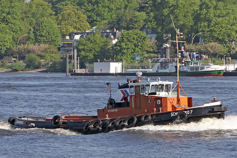 in the background the harbour ferry >Finkenwerder< is visible at the Teufelsbrück pier