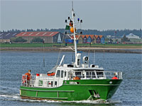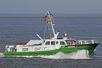 costums patrol boat of the sonamed "17m class" (17 vessels, built by different shipyards, the exact chronological order is unclear), als see >Norderelbe<, (>Rendsburg<, >Tümmler<), >Schulau<, >Brunsbüttel< and >Oevelgönne< - this customs patrol boat was commissioned as ZB >Brunhild< in Passau (Danube). In the course of Austria's accession to the EU the boat was converted into a seagoing boat in 1997, relocated to Husum and renamed ZB >Amrum<. |