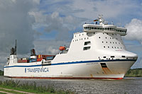 2. Schiff einer Serie baugleicher Fähren (3 Einheiten) - siehe auch die Schwesterschiffe >Stena Foreteller< und >Stena Forerunner< - Ladungsmeter: 3.000, Trailerkapazität: 205 |