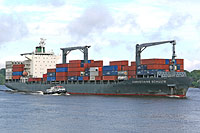 10. Schiff einer Serie baugleicher Containerschiffe dieser Werft (1. Generation, 10 Einheiten), siehe auch >Maersk Newcastle<, >Ocean Promise<, >Maersk Newbury< und >Evridiki G< - siehe auch das Typschiff der 2. Generation: (>Cap Beaufort<, >HSL Sheffield<) sowie das Typschiff der 3. Generation: >Maersk Niagara< - ausgestattet mit 4 Kranen á 45 ts Tragfähigkeit |