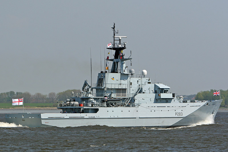 on the occasion of the Hamburg harbour birthday, the patrol craft of the Royal Navy HMS >Mersey<, is on the way to join the entering parade