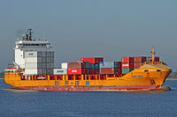 3. Schiff einer Vorserie baugleicher Feeder-Containerschiffe (3 Einheiten im Design "Mawei 700"), siehe auch >OPDR Las Palmas< und (>Focs Tenerife<, >OPDR Tenerife<) - siehe auch das Typschiff der 1. Hauptserie >JRS Capella< (32 Einheiten dieser Werft) sowie das Typschiff der 2. Hauptserie >Ice Bird< (8 Einheiten von Sainty Shipbuilding) |
