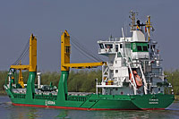 8. Schiff einer Serie baugleicher Mehrzweckfrachter (9 Einheiten), siehe auch >Forester<, >Adrana< und >Cellus< - ausgestattet mit 2 Kranen á 40 ts Tragfähigkeit - dieses Schiff wurde mit dem "Blauen Engel" (Umweltzeichen, weil umweltschonender Schiffsbetrieb) ausgezeichnet |