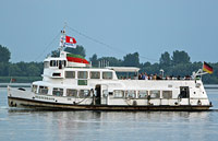 ehemaliges HADAG-"Typschiff", Typ "II". Wer mehr über die Hamburger "Typschiffe" wissen möchte, siehe: "www.elbdampfer-hamburg.de". Das Schiff gehörte bis 2006 zum Bestand der Bootslagerei "Schnalles Hafen" in Schulau und wurde für Sonderfahrten eingesetzt. 2009 wurde das Schiff nach St. Petersburg, Russland verkauft. |