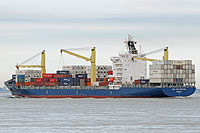 4. Schiff einer Serie baugleicher Containerschiffe vom Typ "Aker CS 2100" (5 Einheiten), siehe auch >CMA CGM Esperanza< - ausgestattet mit 3 Kranen á 45 ts Tragfähigkeit - das Schiff wurde 2012 in >Conti Arabella< umbenannt, siehe auch dort |