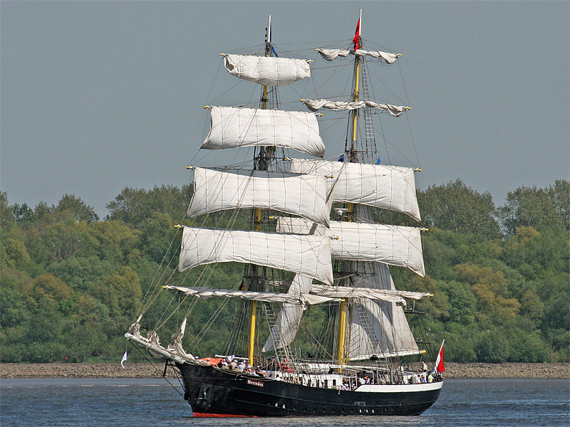 | Bemerkung | anlässlich des Hamburger Hafengeburtstages 2008 segelt die Brigg >Mercedes< erst einmal elbabwärts, um sich später der Einlaufparade anzuschließen. Einige Segel sind gerefft, das Schiff ist bald klar zur Wendung. |