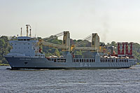 2nd ship of a series of identically constructed cargo ships of Sietas type 176 (4 vessels - no German ice class), equipped with 2 cranes of a lifting capacity of 700 ts each and 1 crane of 350 ts, deck cargo area: 3,128 mē |