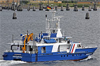 measuring and laboratory vessel - equipped with 1 hydraulic crane and 1 hydraulic slewing stern gibbet of a lifting capacity of 0.5 ts each - the ship was decommissioned in 2014, replaced by a new >Haithabu< (also see there) and sold to Turkey in 2015 |
