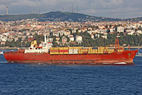 2. Schiff eines Paares baugleicher Feeder-Containerschiffe im Design "B469" - 1995 durch Umbau aus einem Mehrzweckfrachter entstanden - am 25. Oktober 2009 erreichte das Schiff Alang und wurde dort am 7. November auf Grund gesetzt, um von indischen Abwrackern verschrottet zu werden |
