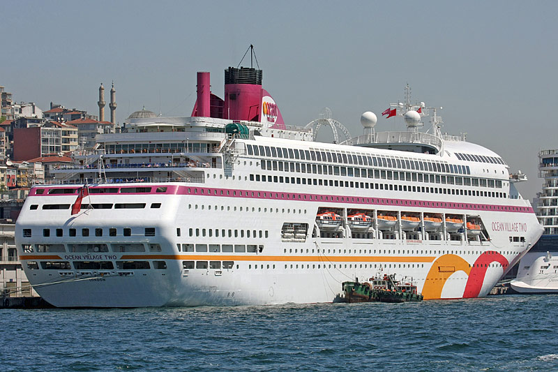 in Istanbul (Türkei), Galatasaray, bei Karaköy am Pier für Kreuzfahrtschiffe liegend