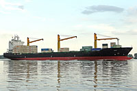 | Zusatzinformationen | 23. Schiff einer Serie typgleicher Containerschiffe vom Typ "MTW 2500", später "Baltic CS 2500" (35 Einheiten - 31 mit und 4 ohne Ladegeschirr - hier Typ "MTW 2500"), siehe auch (>Libra Buenos Aires<, >CMA CGM Bahia<), >Buxlink<, >Libra Niteroi<, (>Iran Fars<, >Artenos<), >Frisia Lissabon<, >Libra Santa Catarina< und (>CSAV Santos<, >Frisia Rostock<) - Bauwerft der hinterer Sektion: Aker Warnow Werft GmbH, Rostock-Warnemünde, Bundesrepublik Deutschland (Nr. 023), Bauwerft der vorderen Sektion: Kvaerner Warnow Werft GmbH, Rostock-Warnemünde, Bundesrepublik Deutschland (Nr. 023) - ausgestattet mit 3 Kranen á 45 ts Tragfähigkeit |