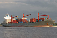 16. Schiff einer Serie typgleicher Containerschiffe vom Typ "MTW 2500", später "Baltic CS 2500" (35 Einheiten - 31 mit und 4 ohne Ladegeschirr - hier Typ "MTW 2500"), siehe auch (>Libra Buenos Aires<, >CMA CGM Bahia<), >Buxlink<, (>Iran Fars<, >Artenos<), >Simber<, >Frisia Lissabon<, >Libra Santa Catarina< und (>CSAV Santos<, >Frisia Rostock<) - ausgestattet mit 3 Kranen á 45 ts Tragfähigkeit |
