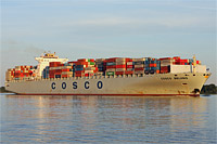 4th ship of a series of identically constructed container ships of the sonamed "COSCO Guangzhou" class (5 vessels) - due to the container capacity the first ship and >COSCO Beijing< were the largest container ships in the world from February 2006 until July 2006 - also see >COSCO Guangzhou< and >COSCO Ningbo< |