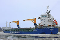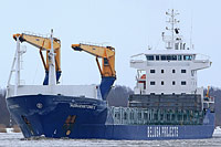 type ship of a series of identically constructed multi purpose dry cargo ships of type "Damen Combi Freighter 12000" (8 vessels), also see >Hollandia< - hull yard: VAT Sudnobudivnyi Zavod "Okean", Mykolayiv, Ukraine (No. 836) - equipped with 2 cranes of a lifting capacity of 80 ts each |