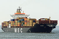 10. Schiff einer Serie baugleicher Containerschiffe (11 Einheiten), bzw. 8. Schiff der sogenannten "MSC Martina"-Klasse (9 Einheiten), siehe auch >MSC Monica< und >MSC Rossella< |
