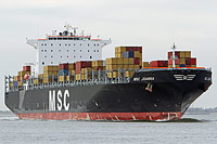 7. Schiff einer Serie baugleicher Containerschiffe der sogenannten "MSC Pamela"-Klasse (12 Einheiten), siehe auch >MSC Susanna< und >MSC Candice< - das Typschiff war bezogen auf die Containerkapazität von Juli 2005 bis Februar 2006 das größte Containerschiff der Welt |