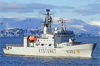 Patrouillenschiff vom Typ W 320 und 3. Schiff der "Nordkapp"-Klasse (3 Einheiten, siehe auch >NoCGV Senja<) - Hauptbewaffnung: 1x 2-fach Simbad SAM-System (Mistral-Raketen), 1x 57mm Kanone Bofors DP, 3x 20mm Rheinmetall AA-Kanone, 1 Mehrzweck-Helikopter Lynx WG-13 - die Schiffe der "Nordkapp"-Klasse werden für die Rettung, Fischereiaufsicht, die Forschung und allgemeine EEZ Patrouillen in norwegischen Gewässern verwendet |
