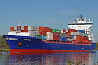 Typschiff eines Paares baugleicher Feeder-Containerschiffe vom Typ "Baltic-Max PW 1400" der Peene-Werft, siehe auch das Schwesterschiff >Empire< + 14 Einheiten vom Typ "improved Baltic-Max PW 1400", siehe hier auch >Cape Fulmar<, >Christopher< und (>OOCL Novgorod<, >A La Marine<) |