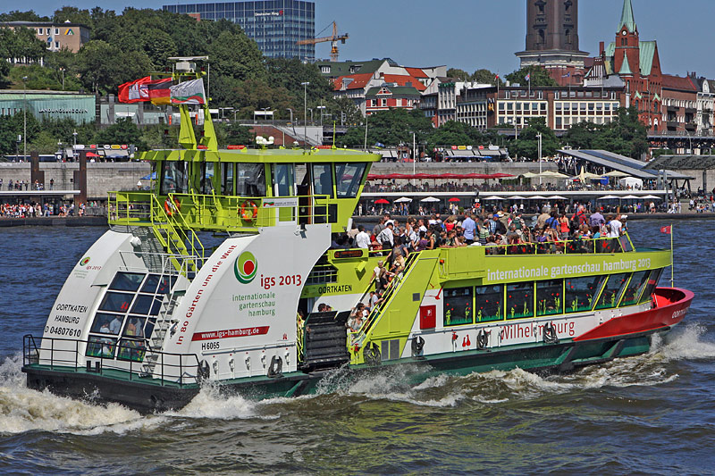 im Hamburger Hafen, vor den St. Pauli-Landungsbrücken, Fahrtrichtung Landungsbrücken