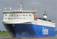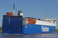 10th ship of a series of identically constructed ferries (12 vessels), also see >Finnpulp<, >Finnmill<, (>Jutlandia Seaways<, >Jutlandia Sea<), >Finnbreeze<, >Finnsea< and >Finntide< - total lane length: 3,326 m, trailer capacity: 230 |