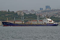 2000 durch Umbau aus einem Frachter entstanden, ausgestattet mit 5 Kranen á 12.5 ts Tragfähigkeit - das Schiff erreichte am 28. November 2013 Alang, Indien, um von der Mahadev Ship Breakers Pvt. Ltd., Bhavnagar (Plot Nr. 134), verschrottet zu werden |