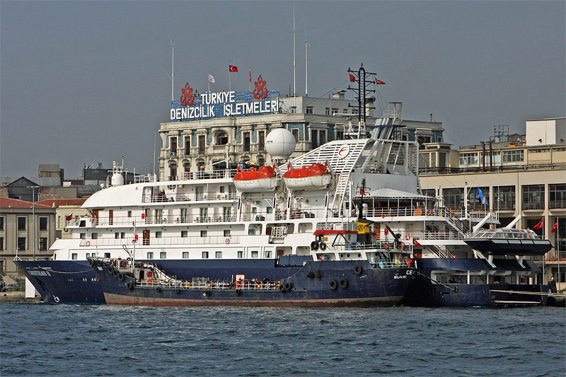 in Istanbul (Türkei), Galatasaray, bei Karaköy am Pier für Kreuzfahrtschiffe liegend