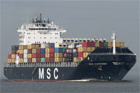8. Schiff einer Serie baugleicher Containerschiffe (12 Einheiten), bzw. der sogenannten "MSC Lausanne"-Klasse (10 Einheiten), siehe auch >MSC Lausanne<, >MSC Geneva<, >MSC Monterey< und >APL Qatar< |