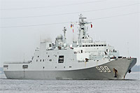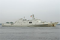 amphibious transport dock ship [LPD] of Project 071 and 3rd ship of the "Yuzhao" class (8 vessels planned so far, of which 5 vessels are completeed) - main armament: 1x 76.2-mm gun AK-176 DP, 4x 30-mm gun AK-630 gatling CIWS, 4 transport or ASW helicopters Z-8 Super Frelon |