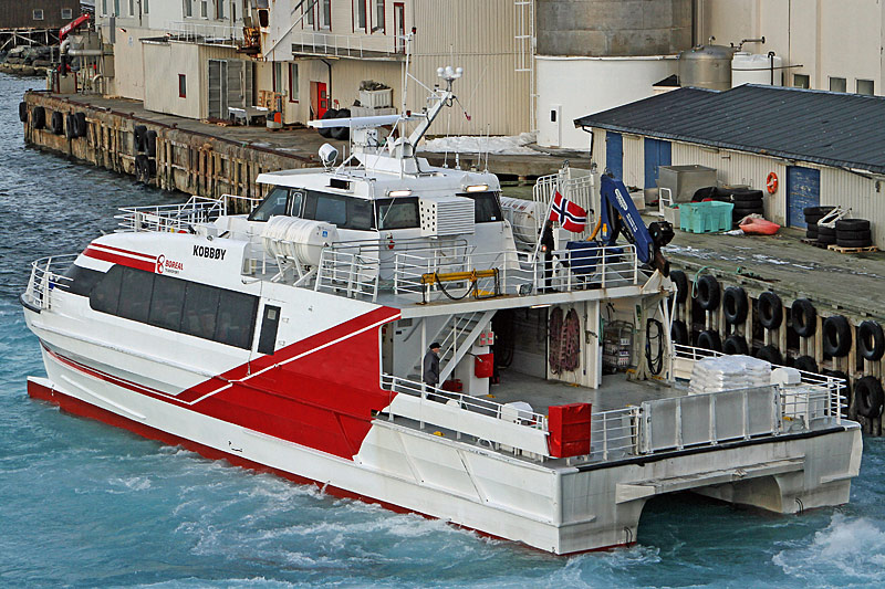 Havøysund, Havøya (Finnmark, N), den Kai des ISPS-Terminals an der "Standgata" verlassend