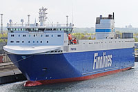 11. Schiff einer Serie baugleicher Fähren (12 Einheiten), siehe auch >Finnpulp<, >Finnmill<, (>Jutlandia Seaways<, >Jutlandia Sea<), >Finnbreeze<, >Finnsea< und >Finnsun< - Ladungsmeter: 3.326, Trailerkapazität: 230 - das Schiff ist mit einem Scrubber zur Abgasreinigung ausgestattet |