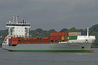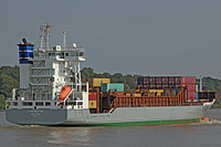 16th ship of a series of identically constructed feeder container ships of Sietas standard type 168 (26 vessels - German ice class E3, open hatch container ship, closed bridge wing, black window frames, 1 welded deck) - also see >Maersk Flensburg< (type 168a), >Larissa< (type 168b) and >Ida Rambow< (type 168V) - also see >Birkaland< and >Robert< in each case |