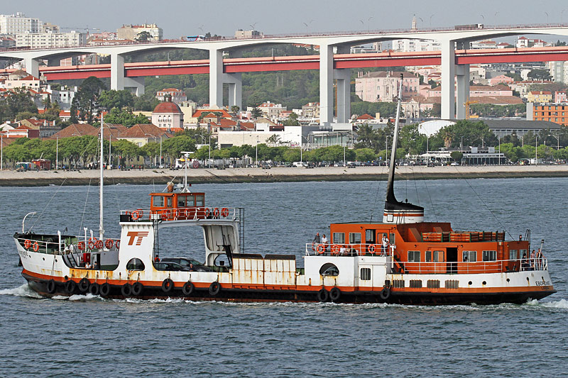 Lisbon harbour (Portugal), coming from the ferry pier >Porto Brandão<, crossing the river >Tejo<, course ferry pier >Belém<