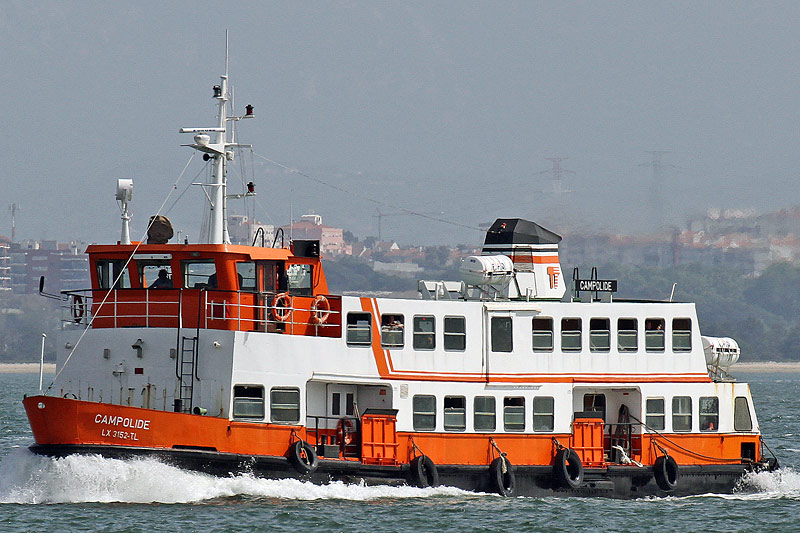 Lisbon harbour (Portugal), coming from the ferry pier >Cacilhas<, crossing the river >Tejo<, course ferry pier >Cais de Sodré<