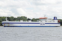 Typschiff einer Serie baugleicher Fähren (3 Einheiten), siehe auch (>Östrand<, >SCA Östrand<) - 2001 bei Turku Shiprepair, Nådendal, Finnland um 14 m verlängert. Ladungsmeter: 1.900, Trailerkapazität: 149 - siehe auch >Obbola< |