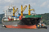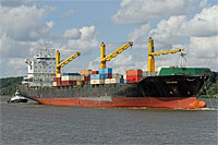 1st ship of a series of type identical container ships of type "MTW 2700", later "Baltic CS 2700" / "Aker CS 2700" (28 vessels - 5 with and 23 without cargo gear - here type "MTW 2700"), also see >Cap Vilano<, >SCI Jyoti<, >CCNI Atlantico<, >Cape Manuel<, >OOCL Bremen<, >CSAV Teno< and >Cape Mayor< - yard for Aft section: Aker MTW Werft GmbH, Wismar, Federal Republic of Germany (No. 024), yard for Fwd section: Aker Warnemuende Operations GmbH, Rostock-Warnemuende, Federal Republic of Germany (No. 024) - equipped with 3 cranes of a lifting capacity of 45 ts each - also see >Iran Ilam< |