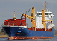 7th ship of a series of identically constructed multi purpose dry cargo ships of type "MCL Bremen" (10 vessels in design "DF80"), also see >BBC Luanda<, >Vera<, >JSP Vento< and >BBC Livorno< - equipped with 2 cranes of a lifting capacity of 80 ts each |