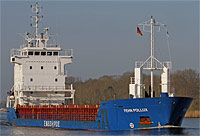 6. Schiff einer Serie nahezu baugleicher Frachter vom Typ "Damen Combi Freighter 4600" (21 Einheiten), siehe auch >Moritz<, >Oslo<, (>A. B. Valencia<, >A B Valencia<, >Kerli<), >Fri Langesund<, (>A B Bilbao<, >Kaja< - IMO 9130200), >Tallin<, >Johanne<, (>Esmeralda, >Vitality<) und (>Christina<, >Christine<) - Rumpfhersteller: Santierul Naval Damen Galati S.A., Galati, Rumänien (Nr. 909) |