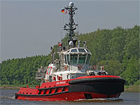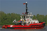 6th ship of a series of identically constructed tugs (8 vessels), also see >BOA Balder< - equipped with 1 hydraulic crane "HS-Marine AK25HE4" of a lifting capacity of 6 ts |