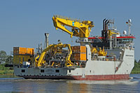 former cable-laying ship - meanwhile the ship has been reconstructed - in addition to 1 crane of a lifting capacity á 40 ts and 1 crane á 2.5 ts, the ship is equipped with a suction dredging device and a permanently installed "Liebherr" excavator |