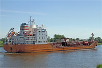 2. Schiff eines Paares baugleicher Chemikalientanker, siehe auch das Schwesterschiff >Smeraldo< - Bugzeichnung nun in weiß sowie Stützen, Rohrleitungen und Tanks in rot |