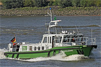 costums patrol boat of the sonamed "17m class" (17 vessels, built by different shipyards, the exact chronological order is unclear), als see >Norderelbe<, (>Rendsburg<, >Tümmler<), >Schulau<, >Brunsbüttel< and >Amrum< - operating site: main costums office Hamburg harbour, subject area C. - after reconstruction of the superstructure |