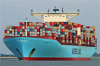 6th ship of a series of identically constructed container ships of the sonamed Maersk "E" class (8 vessels), also see >Emma Mærsk<, >Estelle Mærsk<, >Eleonora Mærsk<, >Evelyn Mærsk<, >Ebba Mærsk< and >Eugen Mærsk< - due to the container capacity from August 2006 until November 2012 the largest container ships in the world - after reconstruction: heightening of the lashing bridges as well as the superstructure by 1 deck |