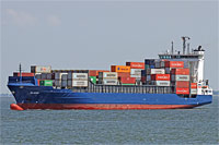 3rd ship of a series of identically constructed feeder container ships of Sietas type 168V (6 vessels - German ice class E3, open hatch container ship, lengthened, closed bridge wing, black window frames, 1 welded deck) - in 02/2008 ship was lengthened at KG Norderwerft GmbH & Co., Hamburg, Federal Republic of Germany (additional cargo section) - also see >Ida Rambow<, >Elite<, (>Baltic Swan<, >Akacia<), >Elan< and (>OOCL Finland<, >Gorky Park<, >Anina<) - also see >OOCL Nevskiy< (standard type 168), >Maersk Flensburg< (type 168a) and >Larissa< (type 168b) - now with new, blue hull painting |