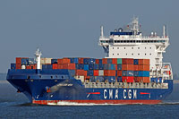 2nd ship of a series of identically constructed large feeder container ships (3 vessels), also see >CMA CGM Pregolia< and >>CMA CGM Louga< - it can accommodate up to 710 refrigerated tanks as well as 270 ultra-wide tanks and meets the DNV-GL class E3 ice requirements - it is also equipped with the largest desulfurization system so far - now with new DWT data |