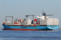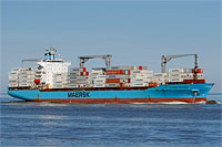 4th ship of a series of identically constructed container ships of this shipyard (1st generation, 11 vessels), also see >Maersk Newcastle<, >Ocean Promise<, >Evridiki G< and >Christiane Schulte< - also see the type ship of the 2nd generation: (>Cap Beaufort<, >HSL Sheffield<) as well as the type ship of the 3rd generation: >Maersk Niagara< - equipped with 4 cranes of a lifting capacity of 45 ts each |