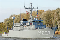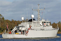 8th Dutch "Alkmaar" ("Tripartite") class coastal minehunter [MHC] (original 15 vessels), also see >HNLMS Schiedam<, >HNLMS Zierikzee< and >HNLMS Vlaardingen< - 5 of them were later sold to Latvia, here also see >Visvaldis<, >Imanta< and >Viesturs< - (all in all 35 vessels for Belgium, France and the Netherlands), also see exemplary >BNS Crocus< (BE) and >Pegase< (FR) - main armament: currently none |