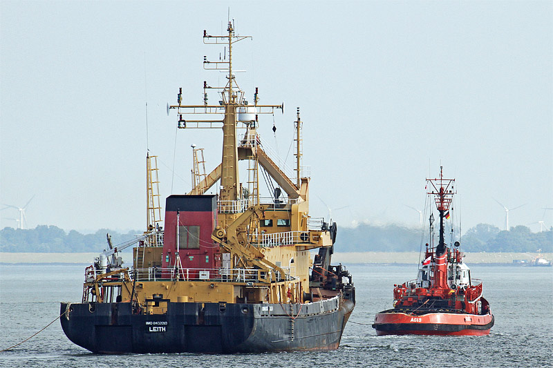 von links nach rechts: Schleppverband, bestehend aus Forschungsschiff