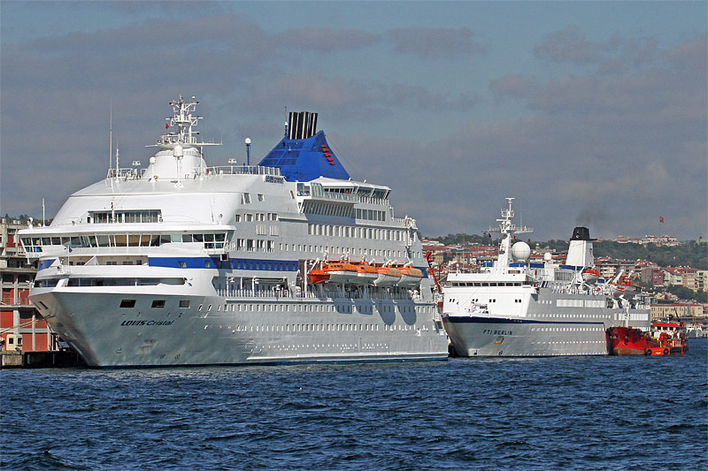 in Istanbul (Türkei), Galatasaray, bei Karaköy am Pier für Kreuzfahrtschiffe liegend